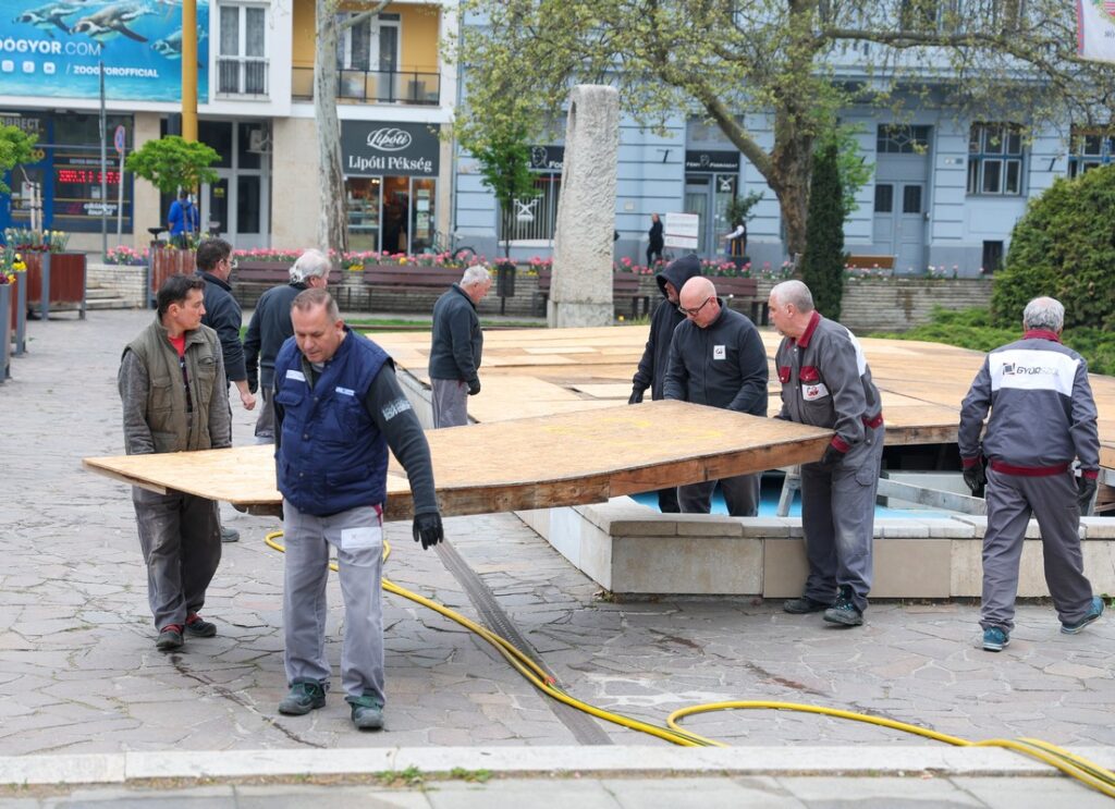 A Győr-Szol Zrt. munkatársai a téli védelmet biztosító burkolatot a városi szökőkutakról eltávolítják, és megkezdik a tavaszi karbantartási feladatok ellátását. A program a kormányhivatal előtti téren indult, ez után következik a többi közterületi vizes műtárgy újraindításának előkészítése.