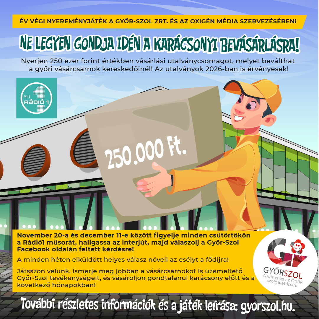 Év végi nyereményjáték a Győr-Szol Zrt. és az Oxigén Média szervezésében!