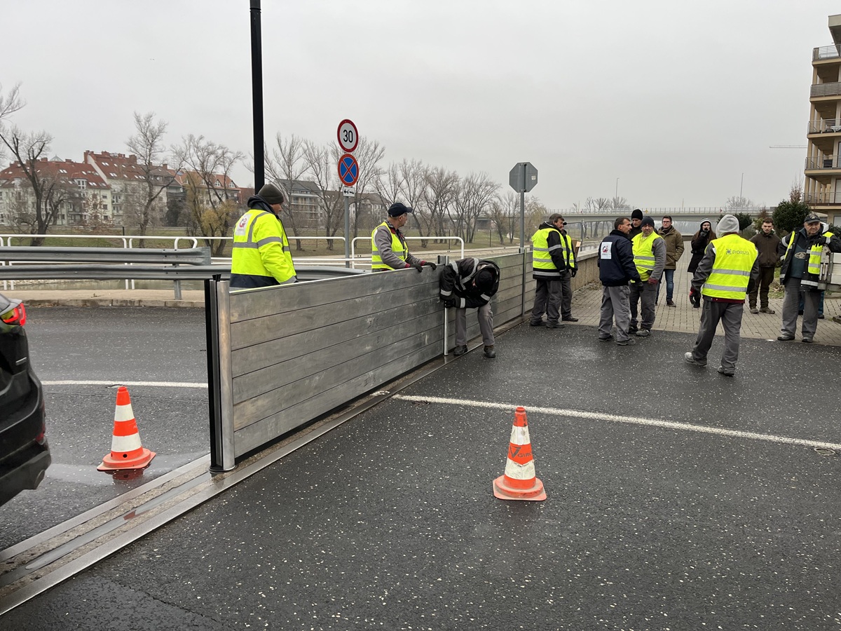 Az Észak-dunántúli Vízügyi Igazgatóság munkatársainak jelenlétében idén is megtartotta éves mobilgát beépítési gyakorlatát a Győr-Szol Zrt. december 3-án, a Móricz Zsigmond rakparton. Az ideiglenes forgalomkorlátozással járó gyakorlat célja, hogy árvízi készültség idején a szolgáltató munkatársai gyorsan és pontosan tudják beépíteni a gát elemeit beépítést tudjanak biztosítani. Árvízi készültség esetén a vízügyi igazgatósággal egyeztetve a mobilgátat a Győr-Szol Zrt. szakemberei egy óra alatt a helyszínre szállítják, és 15 perc alatt telepíteni tudják.